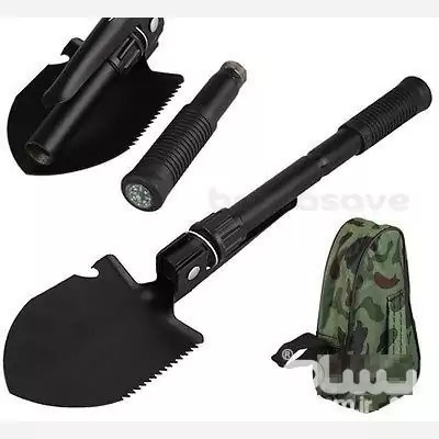 بیلچه تاشو چند کاره این بیل وکلنگ تاشو ارتشی یا نظامی کیف دار، از 2 قسمت ساخته شده است؛ که از یکدیگر، به صورت پیچی قابل جدا شدن هستند. 1-دسته، که شامل یک بخش پلاستیکی است؛ که محل قرارگیریِ دست میباشد و در پشت آن قطب نمایی تعبیه شده است. 2- بخش اصلی، که شامل یک کلنگ و یک بیل است. بیلِ این محصول در یک لبه، دارای یک بخش اره ای است. برای استفاده از هر کدام از این دو بخش، دیگری را روی دسته، خم کرده و پیچ تعبیه شده بر روی دسته را به سمت بالا میپیچیم. پشت کیف بیل تاشو یم جاکمری دوخته شده است که میتوان بیل را از جایی آویزان و یا به کمر خود متصل کنید و حمل آن را آسان میکند