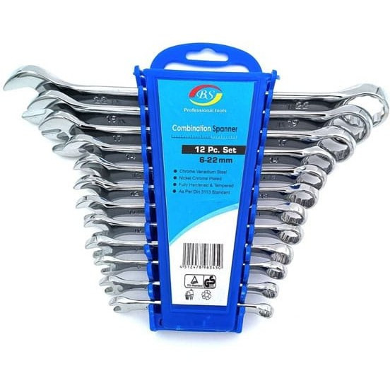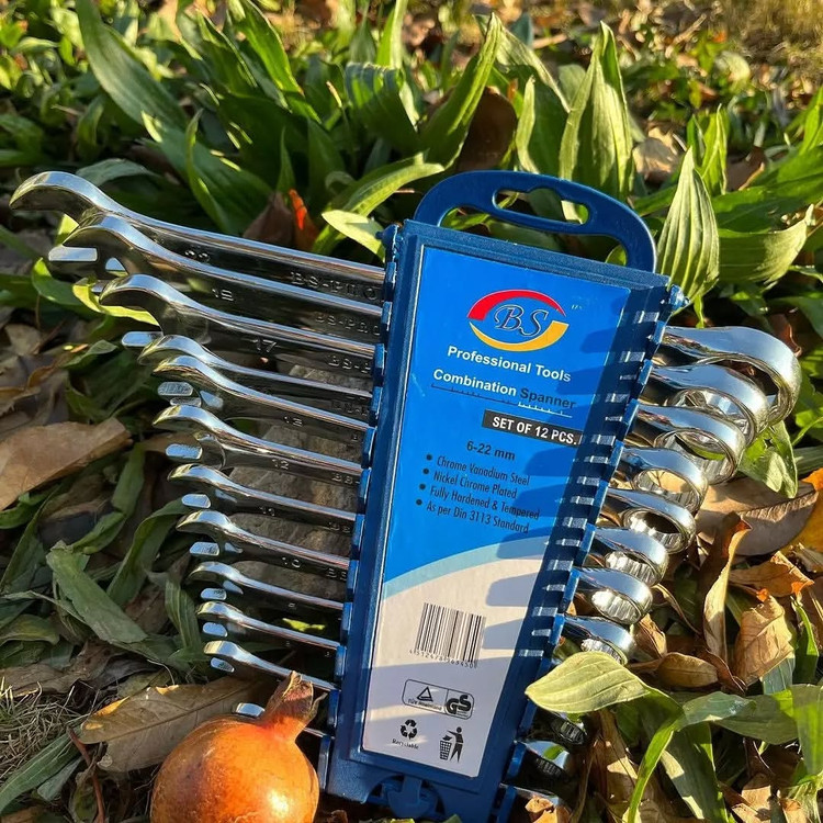 نوع یک سر تخت یک سر رینگ / دسته استاندارد شماره 6 , 7 , 8 , 9 , 10 , 11 , 12 , 13 , 14 , 17 , 19 , 22 کاور پالت پلاستیکی با قابلیت آویزان کردن تعداد 12 سایر توضیحات 12 عدد آچار یکسر تخت یکسر رینگ در سایزهای مختلف