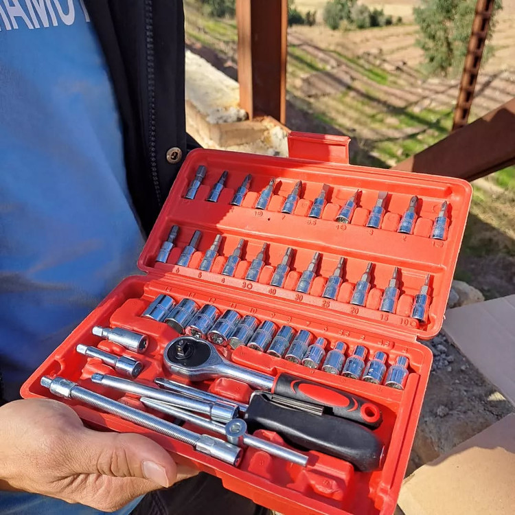 جعبه بکس 46 پارچه حرفه ای آلیاژ : فولاد کروم وانادیوم سایز درایو : 1/4 استاندارد متریک دارای 13 عدد سری بکس درایو 1/4 سایز بکس ها : 4 ، 4.5 ، 5 ، 5.5 ، 6 ، 7 ، 8 ، 9 ، 10 ، 11 ، 12 ، 14 میلیمتر دارای 21 عدد سری بکس پیچگوشتی شامل: 3 عدد سری پیچگوشتی چهارسو خاردار در سایزهای PZ1 ،PZ2 و PZ3 3 عدد سری دوسو در سایزهای SL4 ،SL5.5 و SL7 3 عدد سری چهارسو در سایزهای PH1 ،PH2 و PH3 6 عدد سری آلن ستارهای در سایزهای T10 ،T15 ،T20 ،T25 ،T30 ،T40 6 عدد سری آلن در سایزهای HEX7 ،HEX6 ،HEX5 ،HEX4 ،HEX3 ،HEX8 دارای 1 عدد آچار جغجغه ایی به طول 15/5 سانتیمتر با درایو 1/4 اینچ دارای 1 عدد دسته ی پیچگوشتی به طول 15 سانتیمتر با درایو 1/4 اینچ دارای 2 عدد افزایندهی طول در سایزهای 10 و 5 سانتیمتر دارای 1 عدد افزایندهی طول فنری 14.5 سانتیمتری دارای 1 عدد آچار T به طول 11.5 سانتیمتر دارای 1 عدد سری آلن دارای 3 عدد آچار آلن با طول 4.5 سانتیمتر دارای 1 عدد لقلقه به طول 4 سانتیمتر دارای باکس ضدضربه BMC کیفیت ساخت فوق العاده