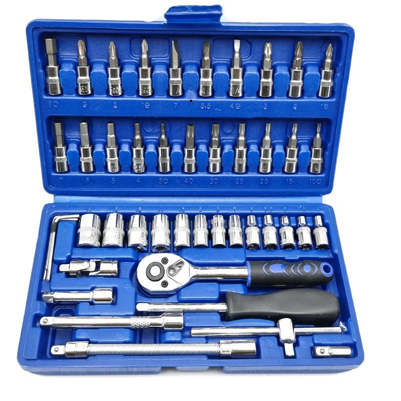 جعبه بکس 46 پارچه حرفه ای آلیاژ : فولاد کروم وانادیوم سایز درایو : 1/4 استاندارد متریک دارای 13 عدد سری بکس درایو 1/4 سایز بکس ها : 4 ، 4.5 ، 5 ، 5.5 ، 6 ، 7 ، 8 ، 9 ، 10 ، 11 ، 12 ، 14 میلیمتر دارای 21 عدد سری بکس پیچگوشتی شامل: 3 عدد سری پیچگوشتی چهارسو خاردار در سایزهای PZ1 ،PZ2 و PZ3 3 عدد سری دوسو در سایزهای SL4 ،SL5.5 و SL7 3 عدد سری چهارسو در سایزهای PH1 ،PH2 و PH3 6 عدد سری آلن ستارهای در سایزهای T10 ،T15 ،T20 ،T25 ،T30 ،T40 6 عدد سری آلن در سایزهای HEX7 ،HEX6 ،HEX5 ،HEX4 ،HEX3 ،HEX8 دارای 1 عدد آچار جغجغه ایی به طول 15/5 سانتیمتر با درایو 1/4 اینچ دارای 1 عدد دسته ی پیچگوشتی به طول 15 سانتیمتر با درایو 1/4 اینچ دارای 2 عدد افزایندهی طول در سایزهای 10 و 5 سانتیمتر دارای 1 عدد افزایندهی طول فنری 14.5 سانتیمتری دارای 1 عدد آچار T به طول 11.5 سانتیمتر دارای 1 عدد سری آلن دارای 3 عدد آچار آلن با طول 4.5 سانتیمتر دارای 1 عدد لقلقه به طول 4 سانتیمتر دارای باکس ضدضربه BMC کیفیت ساخت فوق العاده