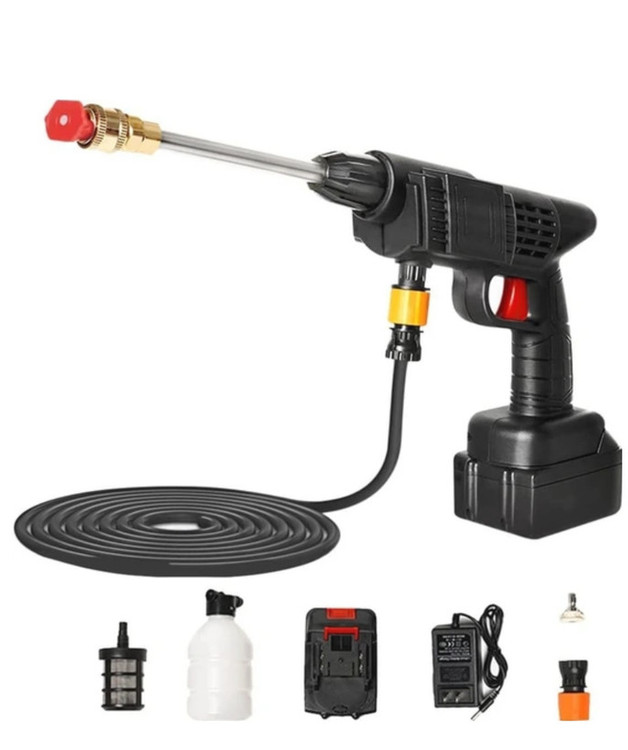 کارواش شارژی بلک اند دکر دو کاره قابل استفاده به عنوان سم پاش سیستم مکش از مخزن بدون نیاز به شلنگ اب دو باطری ۴۴ ولتی ۴ امپری مجهز به مخزن پاشش کف مجهز به انواع سری ها جهت پاشش اب کیف حمل bmc شلنگ آب شارژر قابلیت پرتاپ اب تا ۵ متر