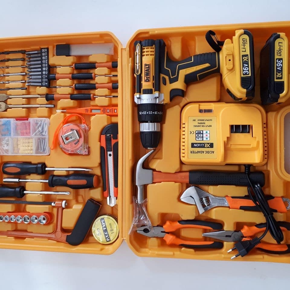 دریل شارژی ۳۶ ولت دیوالت باطری لیتوم ۲ امپری گیربکس صنعتی دو حالته سرعتی ترکمتر ۱۸ حالته چراغ ال ای دی مجهز به باطری های لیتوم دارای نشانگر مانده شارژ شارژر صنعتی به همراه پک وسایل کاربردی